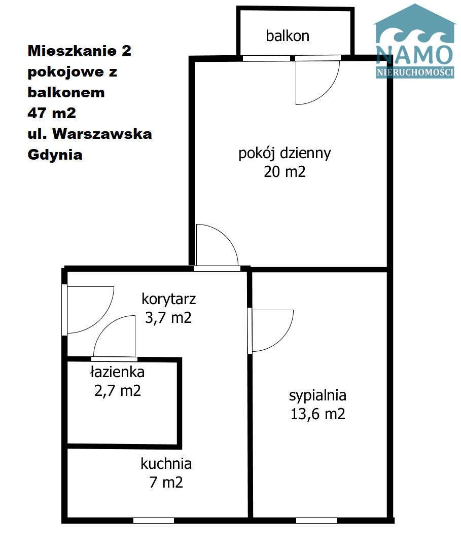 Mieszkanie dwupokojowe z balkonem ( 47 m2 ) na czwartym piętrze budynku z wewnętrznym parkingiem dla mieszkańców przy kultowej ulicy Warszawskiej w gdyńskiej dzielnicy Działki Leśne.