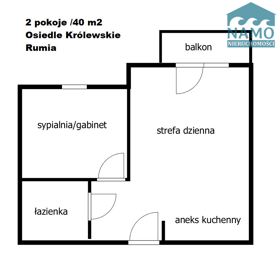 Mieszkanie 2 pokojowe ( 40 m2 ) na czwartym piętrze budynku czteropiętrowego z windą na Osiedlu Królewskim w Rumi.
